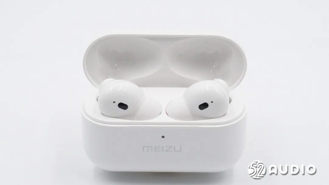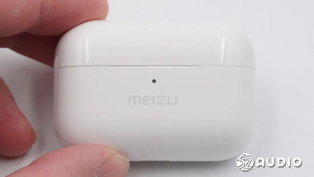 充电盒正面设计有便于开启的倒角,指示灯和“MEIZU”品牌LOGO