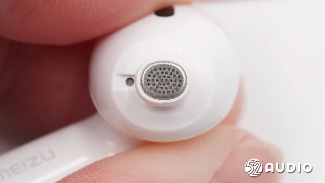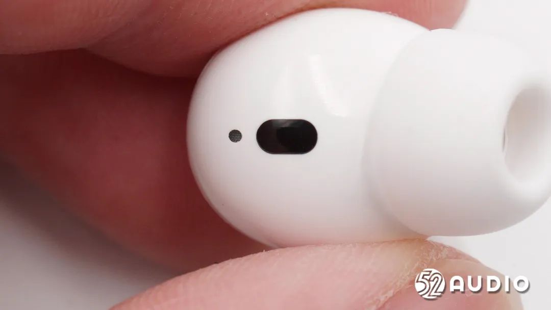 耳机内侧搭载有光学传感器,用于入耳检测功能。旁边是一颗小的泄压孔。