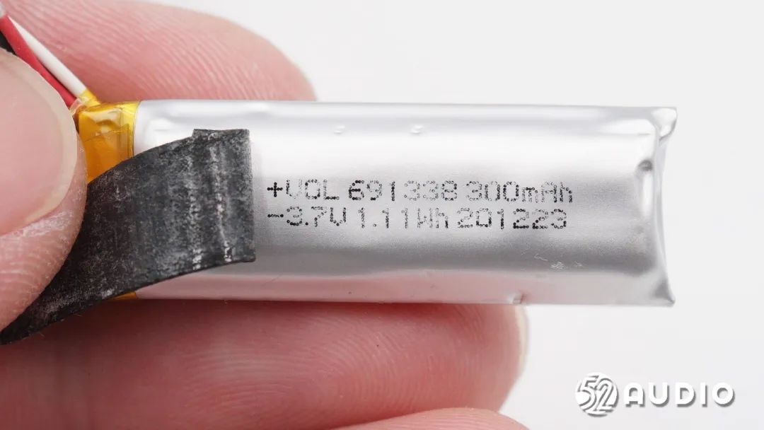 耳机内采用了型号WD1240的钢壳扣式电池,电压:3.7V,容量:0.167Wh