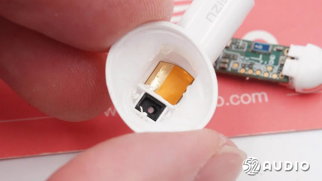 取出光学传感器,耳机内侧光学传感器透镜结构特写。
