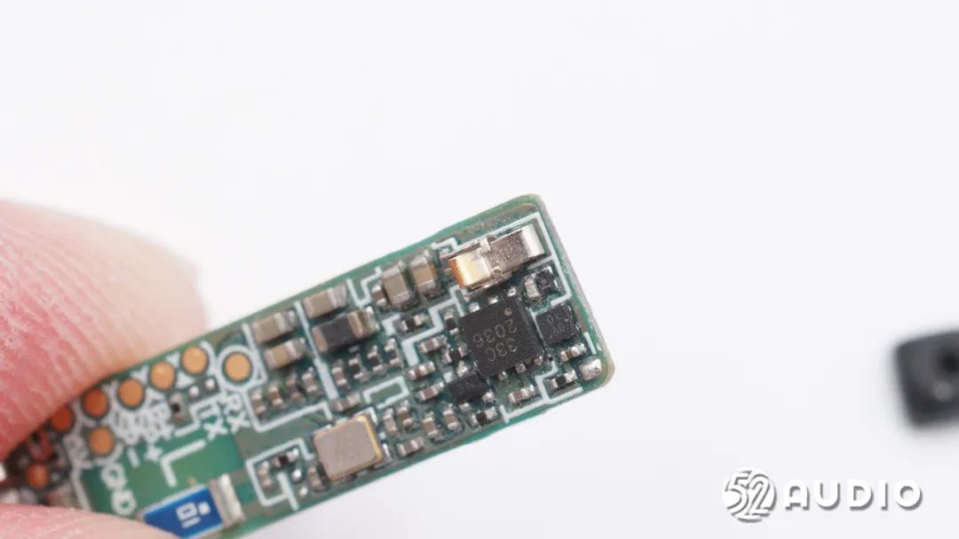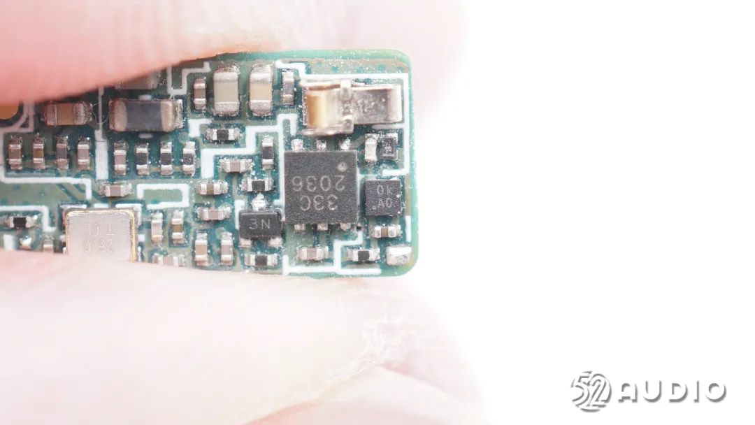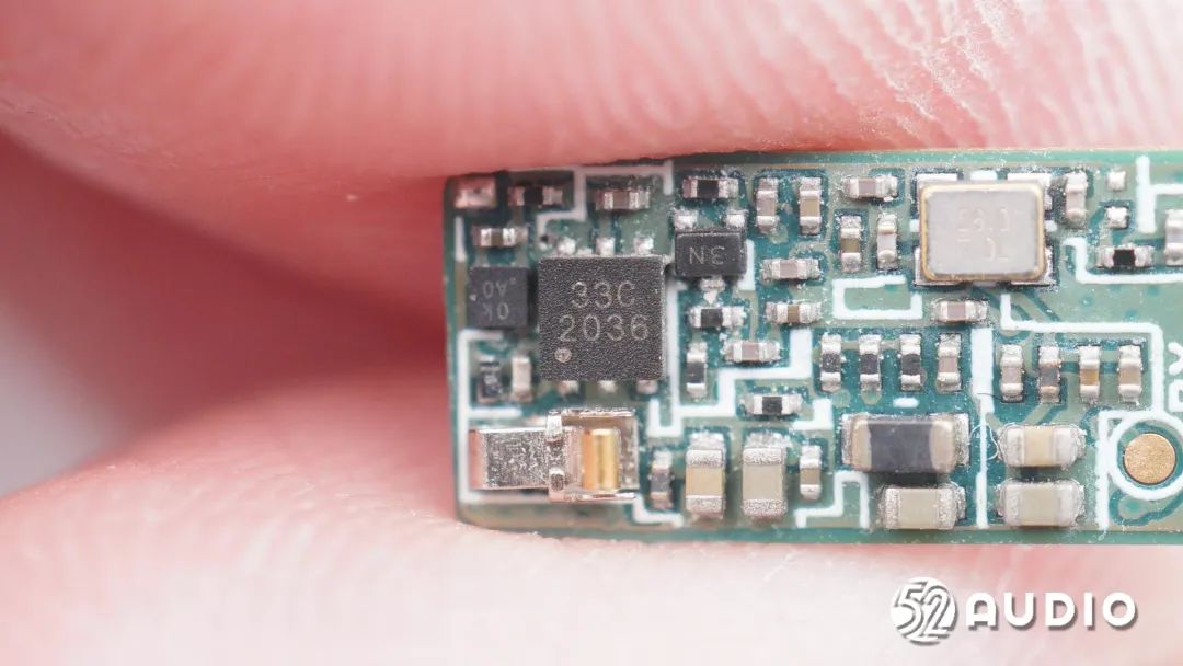 丝印33C 2036的触摸检测IC,用于耳机各项功能控制。