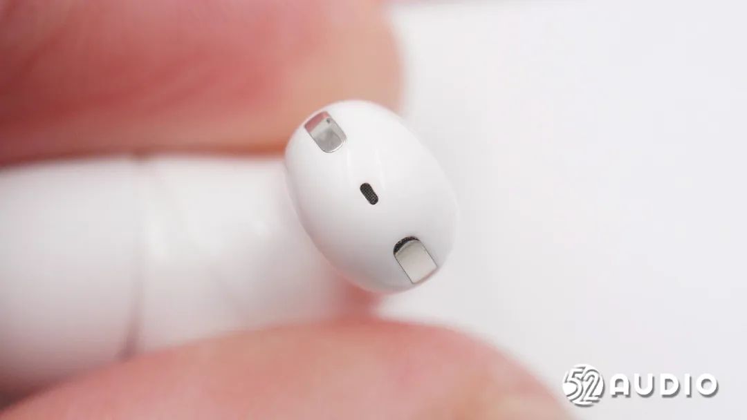 耳机柄设计扁平,背部设置有前馈降噪麦克风拾音孔,同时周围也是触控区域。