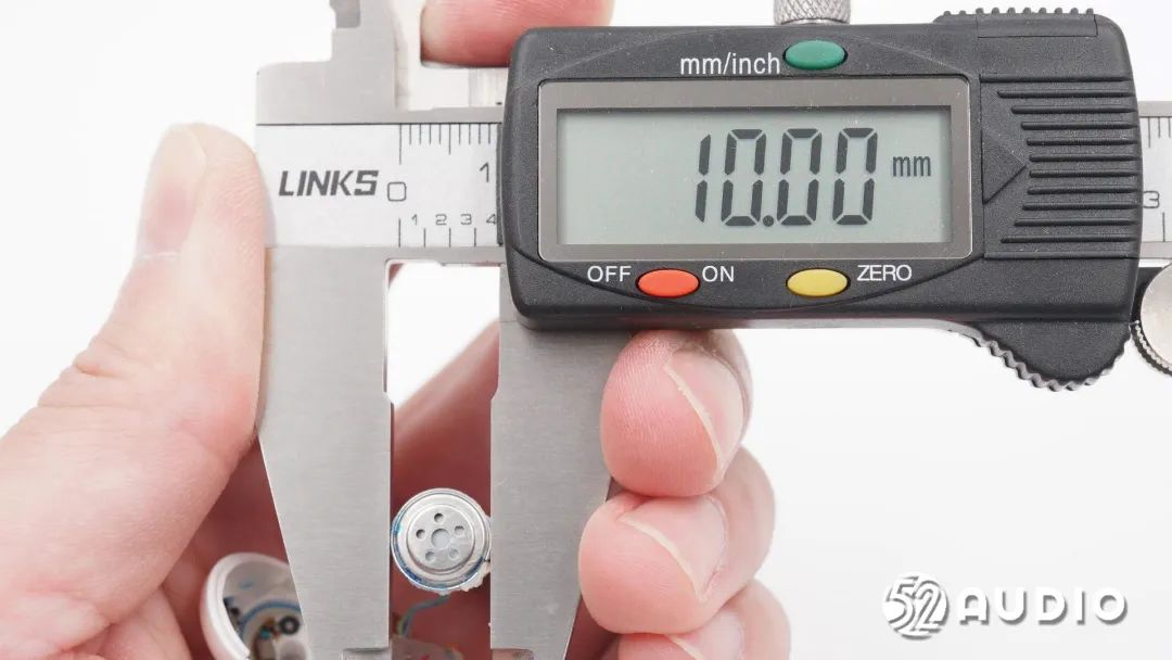 经我爱音频网实测,扬声器尺寸约为10mm,与官方宣传一致。